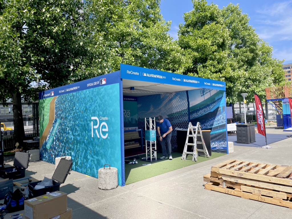 Charlotte’s Web CBD launched its new product line, ReCreate, at the 2023 ASG. ReCreate needed to make a splash inside Play Ball Park during All-Star Weekend. ReCreate needed to show up in a big way next to other MLB Jewel Event Partners, Like Adobe, Budweiser, Carona, Seat Geek, Adobe, and TMobile.
