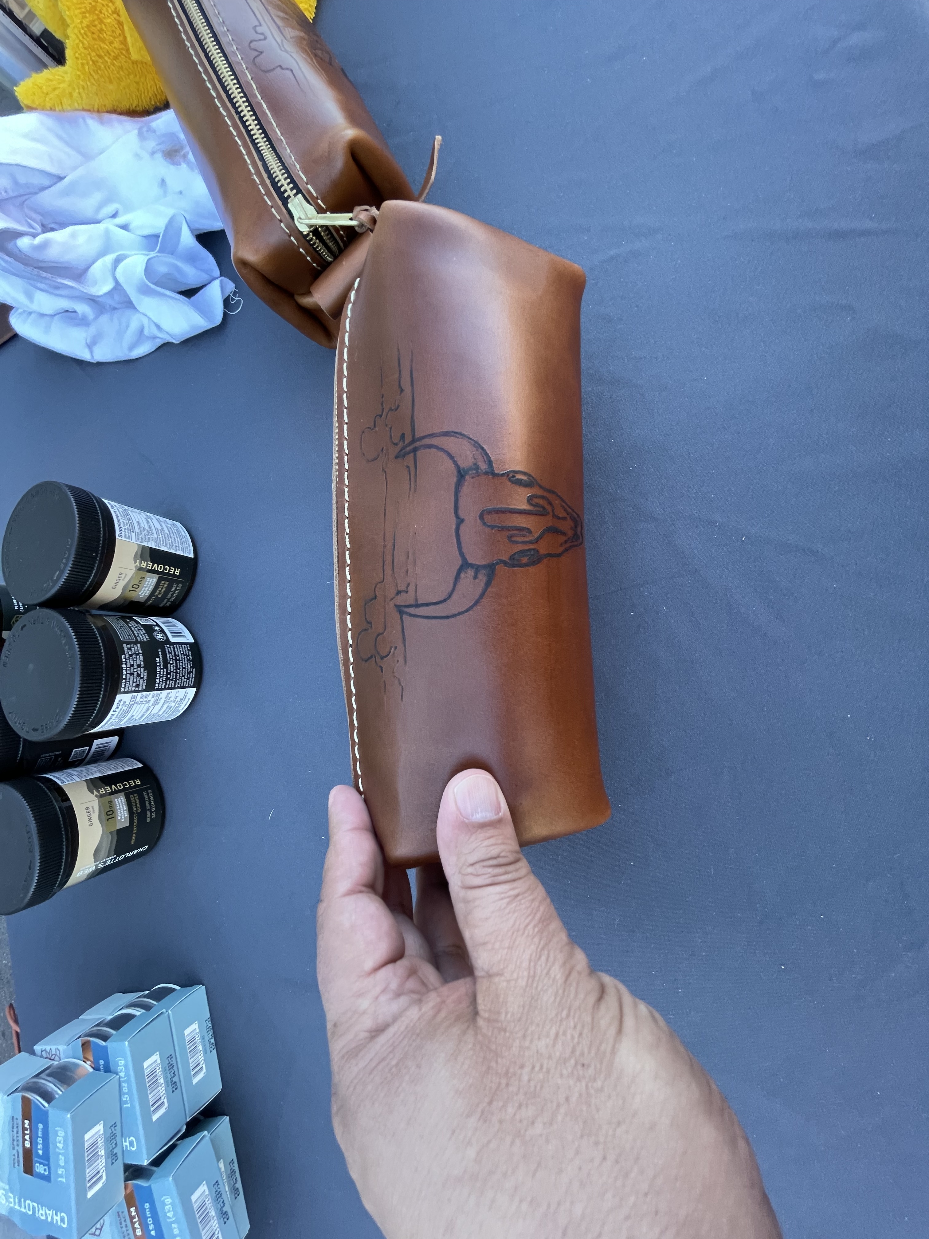 - Concept/Activation: CAA invited Charlotte’s Web to their Super Bowl event in Phoenix. Their concept was a hotel takeover for their VIPs as an oasis during the hustle and bustle of Super Bowl week. Charlotte’s Web participated in a VIP gifting suite and morning rejuvenation session that featured massages poolside. I managed our activation with their major brand partners (Oakley, Buffalo Trace, lululemon, Starter, LoveSac, and Kendra Scott). Our idea was to provide personalized leather bags for guests to bring home CBD samples after the game. I found a local leather works company in Phoenix that made customer bangs for CW that featured players’ numbers on the bag. I also contacted a local tattoo artist to be on-site to do custom tattoo art on each bag in front of the athletes.